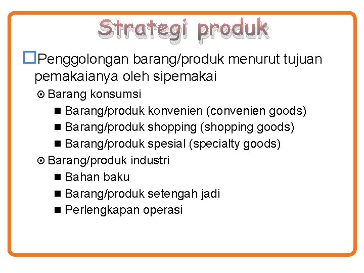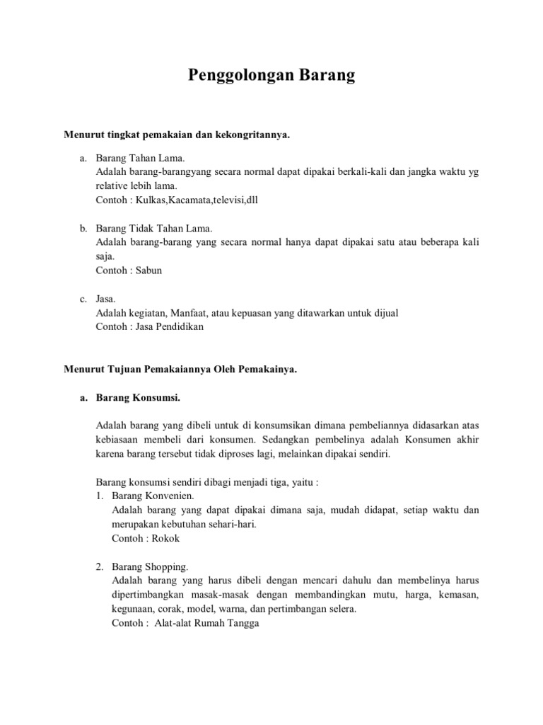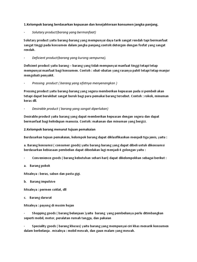 Klasifikasi produk menurut tujuan konsumsi produk. Maybe you would like to learn more about one of these? Check spelling or type a new query. We did not find results for: