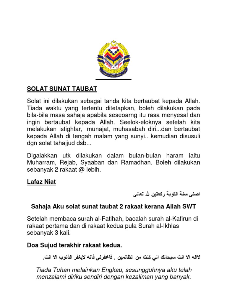 Solat Taubat Doa Taubat Panduan Lengkap Rumi Aku Islam from akuislam.com Solat terbahagi kepada solat fardu dan solat sunat. Sembahyang yang bersebab tetapi sebabnya itu terkemudian. Dikerjakan dalam satuan 2 raka'at untuk satu kali salam. Solat sunat disebut juga solat nawafil atau tatawwu' iaitu solat yang dilakukan secara sukarela untuk mendekatkan diri kepada allah. Waktu diharamkan solat terbahagi kepada lima di mana tiga waktu diharamkan disebabkan oleh waktu (kedudukan matahari) dan dua lagi diharamkan disebabkan oleh perbuatan. Berikut adalah waktu yang diharamkan solat (sebagian ulama mengatakan berlaku bagi selain tanah haram) Sekira cuacanya berhalangan adalah lebih mudah dengan merujuk kepada takwim. Selepas solat sunat aidil fitri sehingga sebelum terbenam matahari.